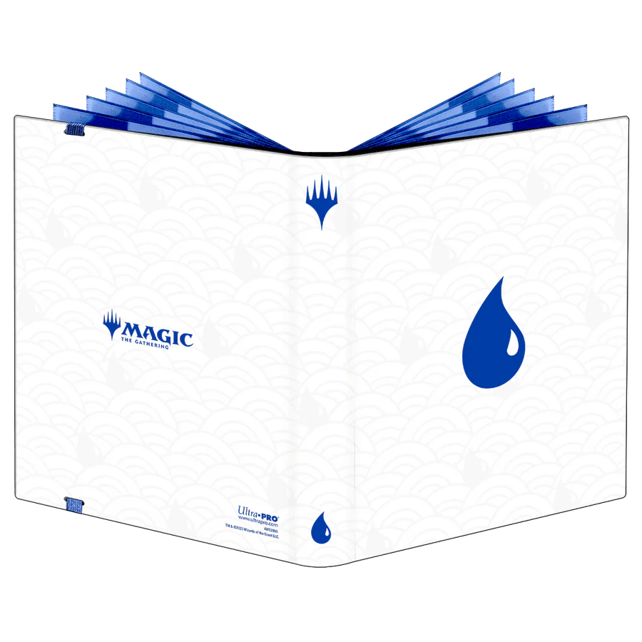 Este 9-Pocket PRO-Binder para Magic: The Gathering presenta un material tipo piel blanca con el icónico símbolo de Island en azul y una correa elástica a juego. Guarda y protege hasta 360 cartas de tamaño estándar con doble funda en protectores Ultra PRO Deck Protector®. Cada página tiene un respaldo azul de baja fricción que da a tus cartas un aspecto clásico y enmarcado. Los pocket con carga lateral y el material de baja fricción ayudan a mantener las cartas en su lugar. Todos los materiales son seguros para archivo, libres de ácido y sin PVC, para una protección de calidad premium.